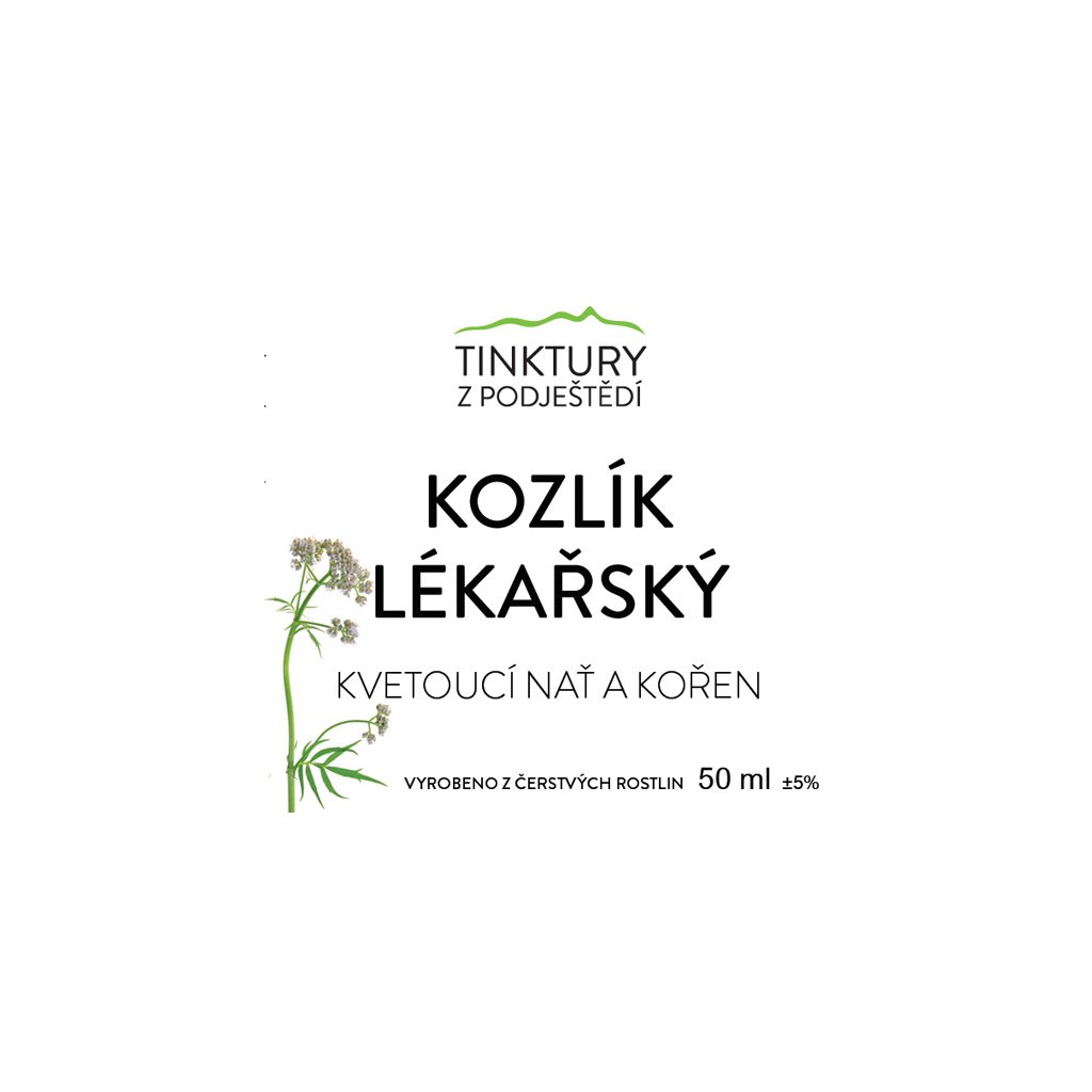 Bylinná tinktura z kořene a natě kozlíku lékařského (Valeriana officinalis). Kozlík patří mezi tradiční evropské léčivé rostliny a je známý svou charakteristickou vůní. Pěstujeme ho v hluboce zúrodněných brázdách, kde na podzim sklízíme jeho kořeny. Nať sbíráme v květu.