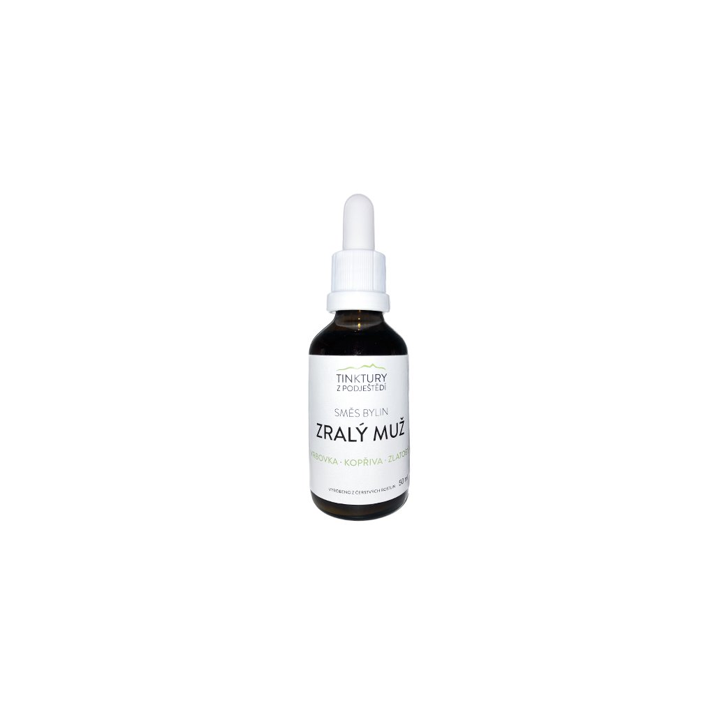 Tinktura Zralý muž jsou bylinné kapky z čerstvých rostlin zaměřená na podporu přirozené funkce prostaty a močových cest. Harmonická kombinace tradičních bylin vzniká ručním zpracováním rostlin pěstovaných na ekofarmě v Podještědí.